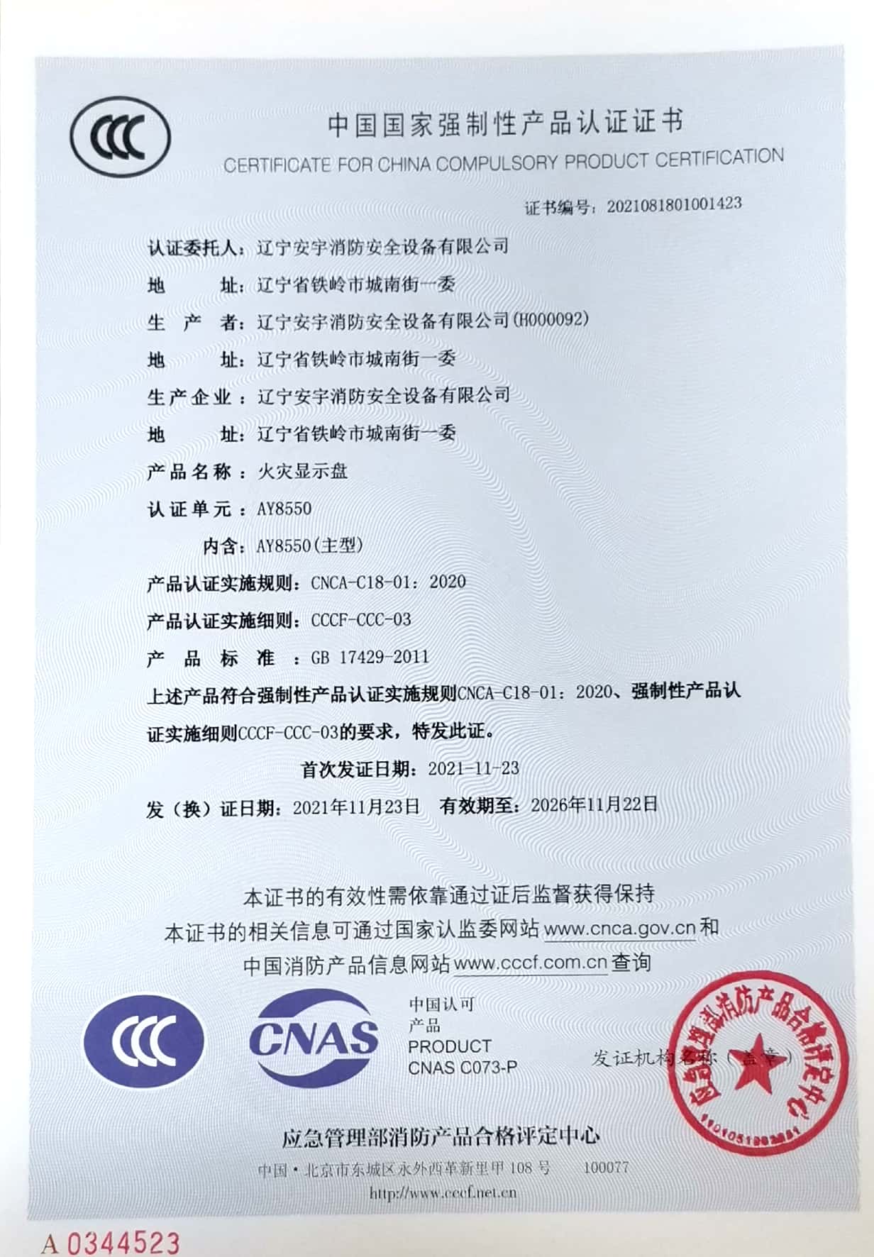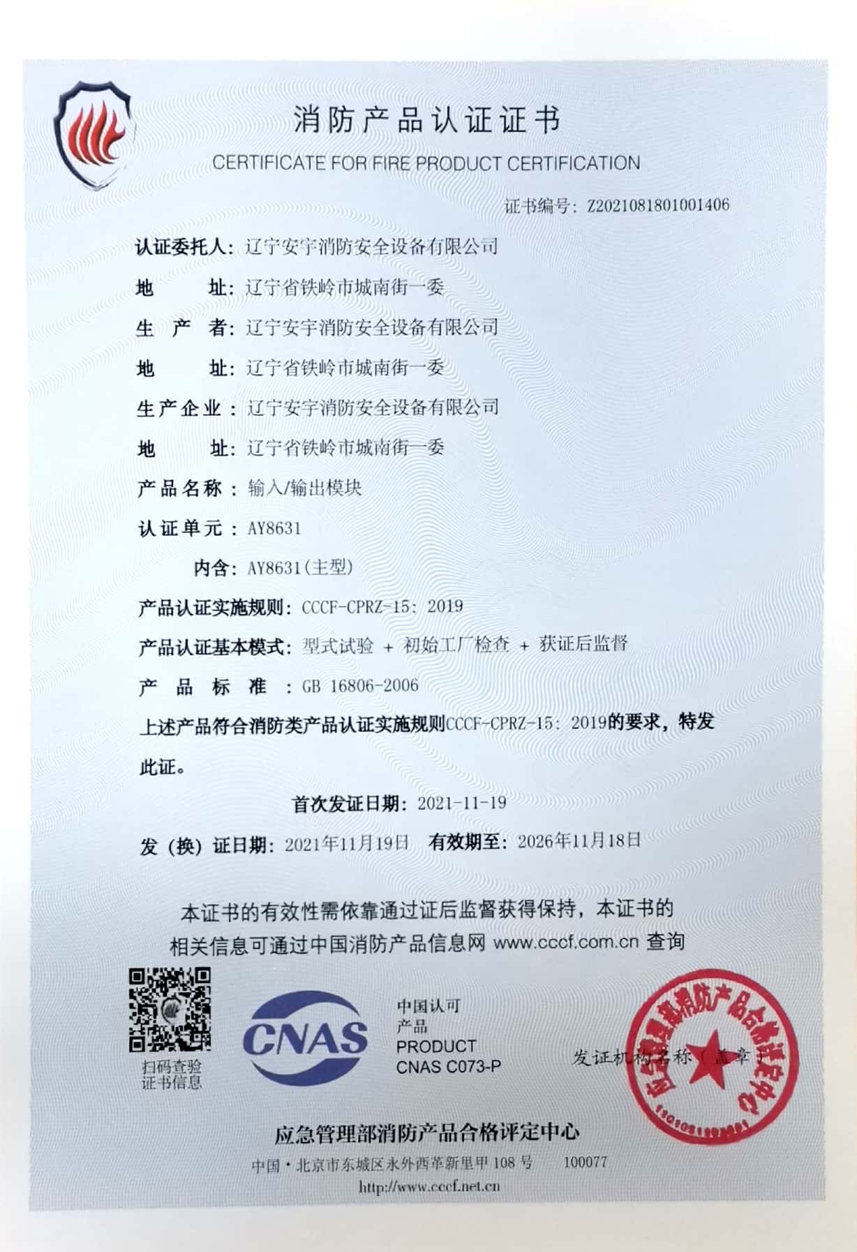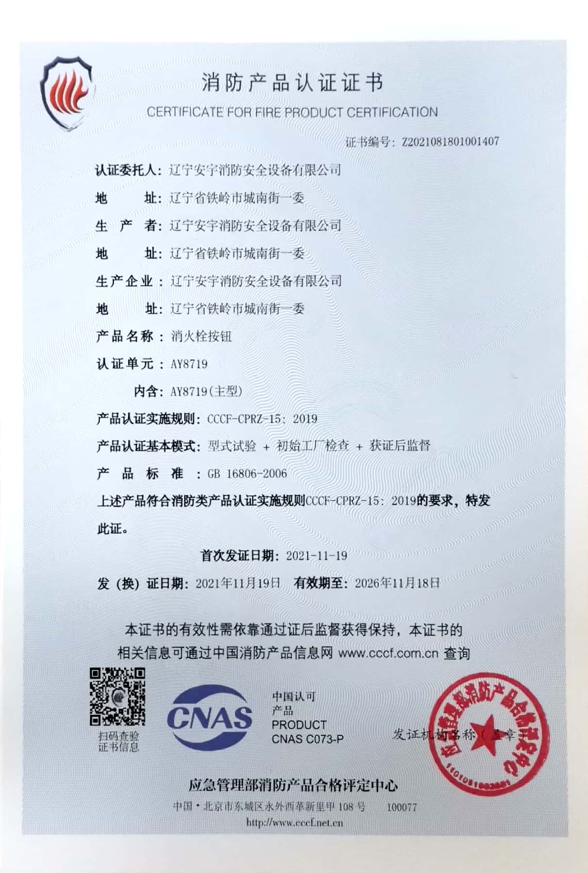 公司以高素質(zhì)的職業(yè)化人才隊(duì)伍、完善的現(xiàn)代化管理機(jī)制和質(zhì)量管理體系,獲得了中國認(rèn)證機(jī)構(gòu)國家認(rèn)可委員會(CNAB)認(rèn)可的中國質(zhì)量認(rèn)證中心(CQC)質(zhì)量管理體系認(rèn)證公安部消防產(chǎn)品合格評定中心的產(chǎn)品質(zhì)量認(rèn)證中國強(qiáng)制性產(chǎn)品認(rèn)證(China Compuisory Certification ,簡稱3C)認(rèn)證,使安宇產(chǎn)品在技術(shù)含量及產(chǎn)品的質(zhì)量和穩(wěn)定性方面始終處于國際同行業(yè)前端水平。