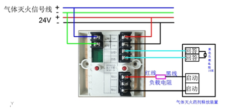 3.輸出端是否串聯(lián)負載電阻且連接氣體滅火藥劑釋放裝置。